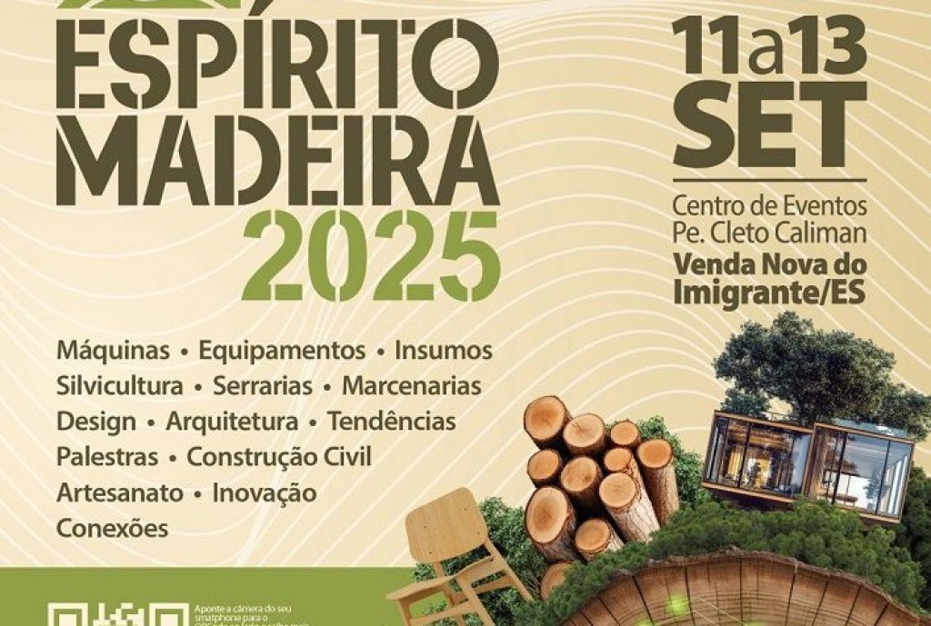 A Espírito Madeira 2025, marcada para os dias 11 a 13 de setembro, no Centro de Eventos Padre Cleto Caliman, o “Polentão”, em Venda Nova do Imigrante (ES), se consolida como um dos maiores encontros do setor madeireiro no Brasil. O evento reunirá empresas e profissionais da cadeia produtiva para três dias de negócios, networking e troca de experiências, com foco em diversidade e inovação.
