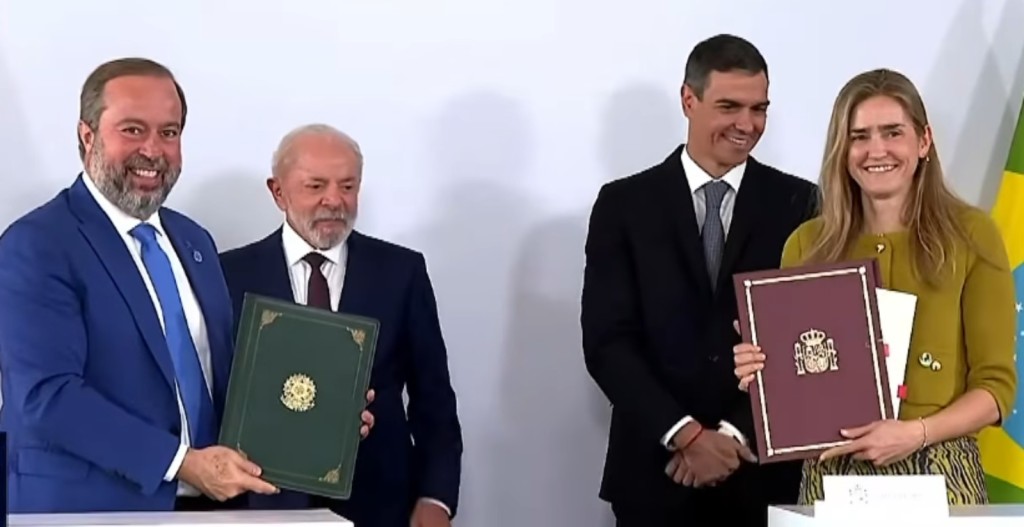 Ao lado do presidente Luiz Inácio Lula da Silva, o ministro de Minas e Energia, Alexandre Silveira, assinou nesta sexta-feira (17/4) o Memorando de Entendimento (MdE) que estabelece bases para ampliar a cooperação bilateral no setor de minerais críticos entre Brasil e Espanha. O acordo foi firmado após a participação brasileira na I Cúpula Brasil-Espanha e Mobilização Progressista Global, e tem como foco o desenvolvimento de cadeias produtivas estratégicas, atração de investimentos, inovação tecnológica e promoção de práticas sustentáveis na exploração e no processamento desses recursos.