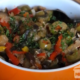 Ingredientes 2 berinjela 1 pimentão vermelho 1 pimentão amarelo pimenta biquinho a gosto uva passas e pimenta calabresa a gosto 1 cebola grande picada em tirinhas...
