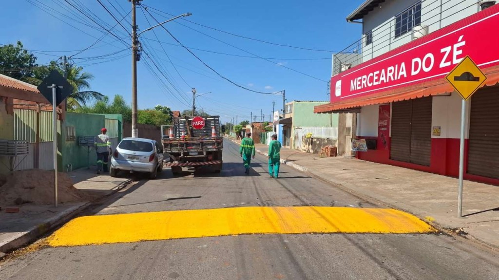 Várzea Grande intensifica instalação de quebra-molas para garantir mais segurança viária