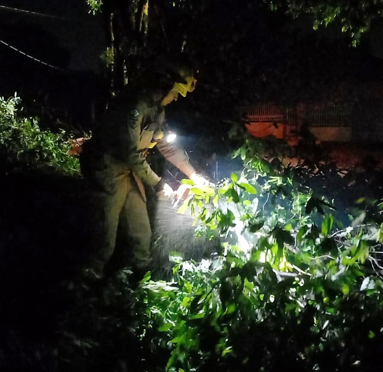 A equipe da 7ª Companhia Independente Bombeiro Militar (7ª CIBM) foi acionada para atuar em vários pontos da cidade, que enfrentou chuvas intensas acompanhadas de rajadas de vento. A força da tempestade causou danos significativos: residências e estabelecimentos comerciais ficaram destelhados, fachadas foram danificadas e houve a queda de árvores sobre vias públicas e rompimento de fios energizados, aumentando o risco de acidentes.
